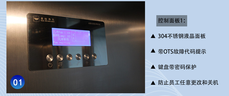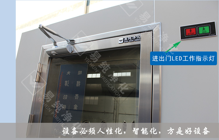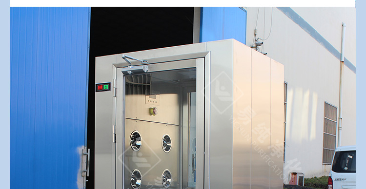 3、采用風機高低檔轉速要求對內部空氣進行自動循環自凈。當有人員進入風淋內部時,風淋風機啟動,風速一般達到25-28米/秒左右,當人員出風淋后,風淋風機低速運轉,在設定時間到達后即停止。這樣的反復自凈,將內部空氣不斷循環更新,以保證室內空氣的新鮮及潔凈度。